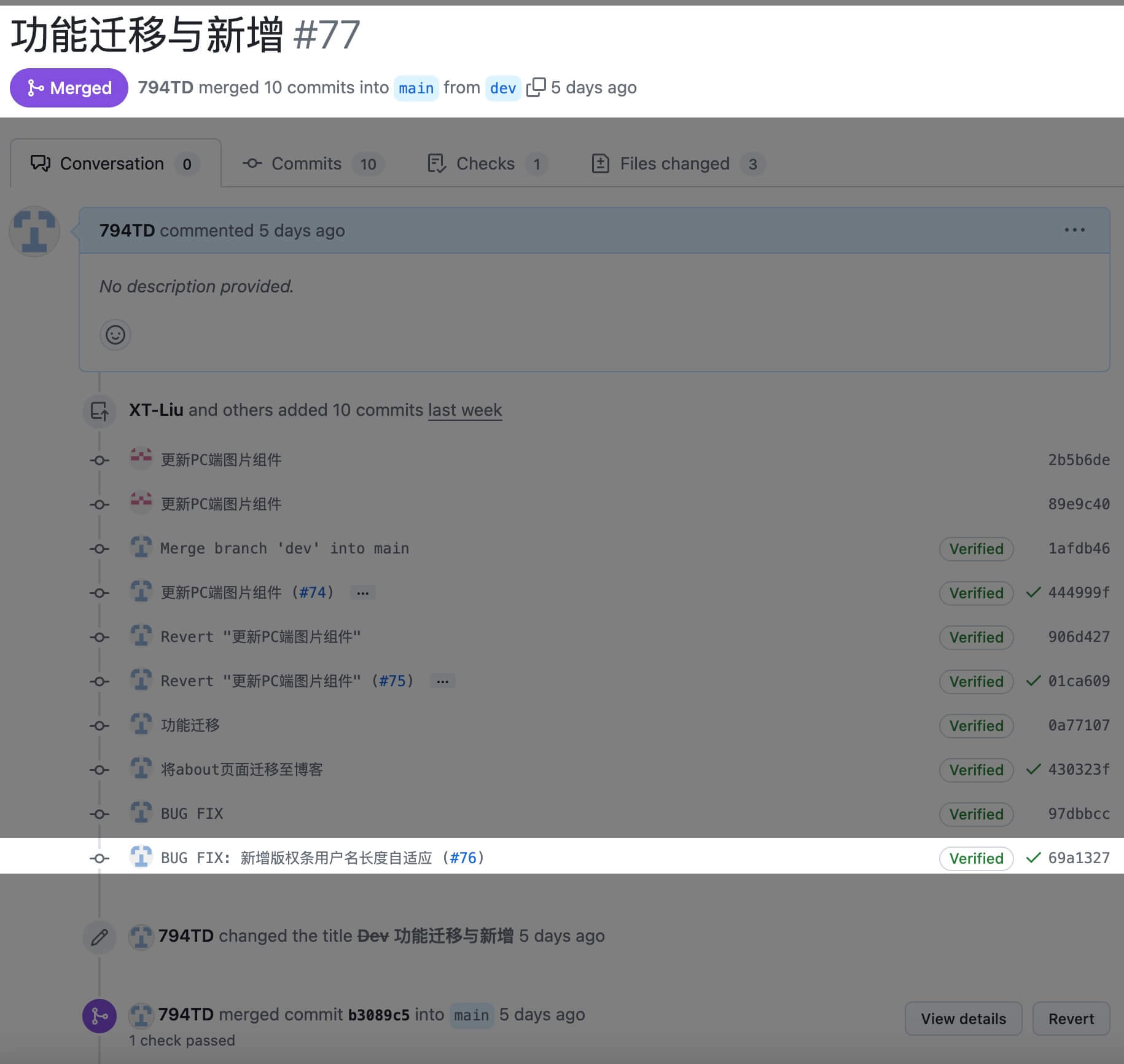 );这段代码会计算版权声明所需要的长度,并且动态调整版权声明所在的位置。 我们在4月12日将这段代码合并进入了主分支(及生产环境,这是用户实际使用的版本)。